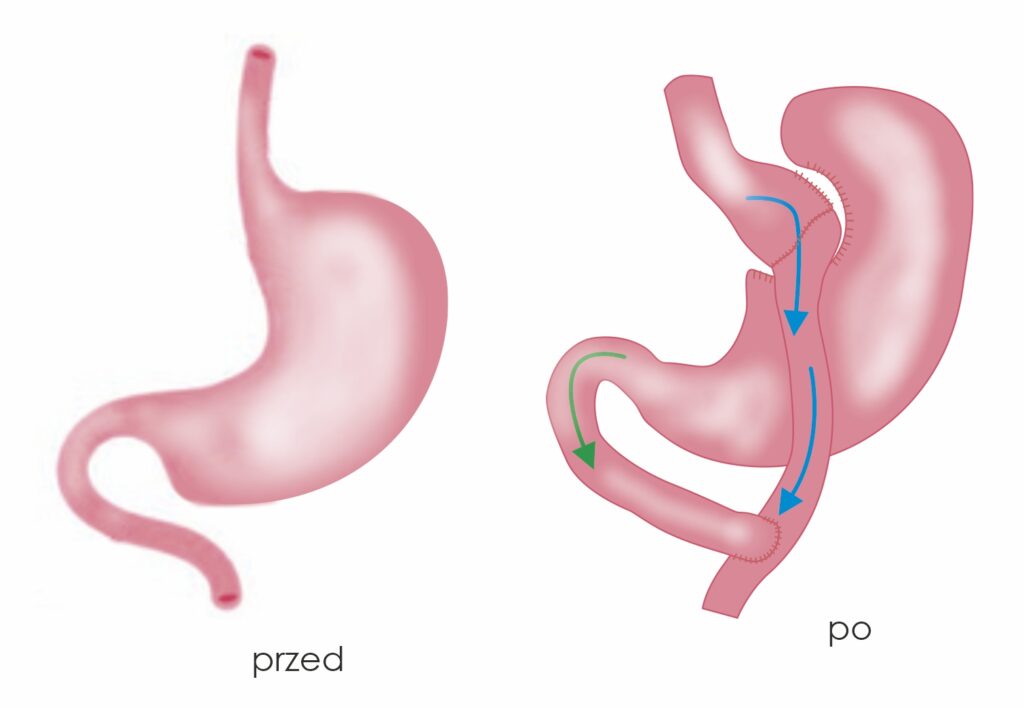 Procedura „Gastric Bypass“ (bypass żołądkowy) polega na stworzeniu mniejszego żołądka oraz zmodyfikowaniu dróg trawiennych. W wyniku operacji żołądek zostaje podzielony na dwie odrębne części. Jego mniejsza część o pojemności 100 ml łączona jest z jelitem cienkim w taki sposób, że pozostała część żołądka razem z dwunastnicą i fragmentem jelita czczego zostają wyłączone z normalnego trawienia i wchłaniania pokarmu.