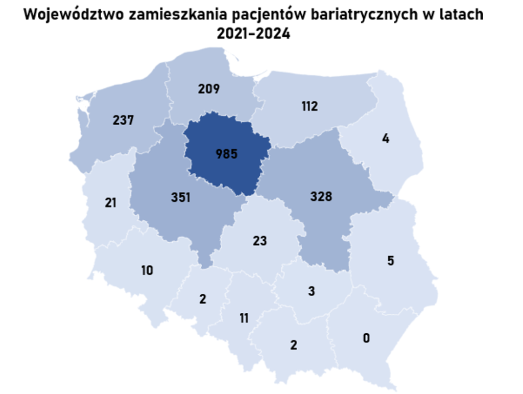 Statystyka pokazuje, że operacyjne leczenie otyłości w naszej Klinice cieszy się powodzeniem we wszystkich regionach Polski. Przyjeżdżają do nas pacjenci z całego kraju, bez względu na miejsce zamieszkania.