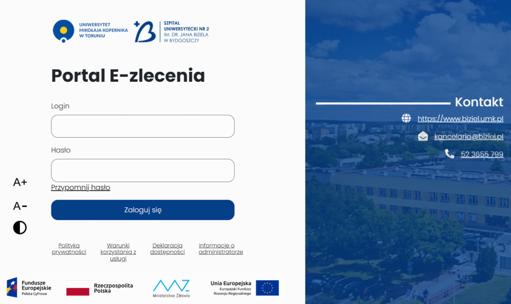 Wybierz e-usługę, do której chcesz się zalogować. E-rejestracja i e-zlecenia to nowoczesne rozwiązania cyfrowe, dzięki którym wiele formalności medycznych można załatwić online, bez potrzeby bezpośredniego odwiedzania rejestracji czy szpitala. Ułatwiają zapisanie się na wizytę oraz otrzymanie potrzebnego sprzętu medycznego, w sposób szybki wygodny i bez zbędnych kolejek.